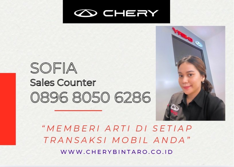 Perkenalkan saya SOFIA (Sales Counter) akan membantu Anda dalam memiliki kendaraan Chery dalam bentuk: konsultasi menentukan produk Chery yang sesuai dengan kebutuhan, konsultasi pembelian cash/credit yang sesuai dan cocok dengan dana yang dimiliki, memberikan paket promo terbaik, test drive kendaraan, layanan service seperti booking service, klaim dan daftar asuransi kendaraan, dan lain sebagainya. Ada yang ingin ditanyakan? Segera hubungi saya.